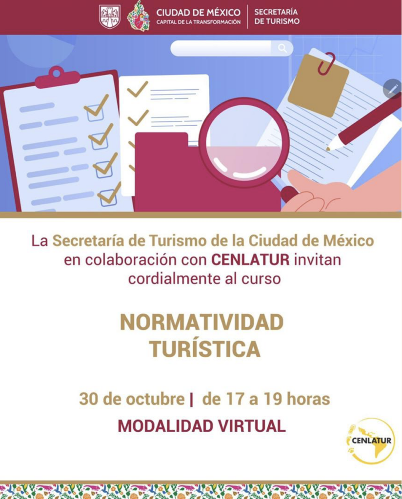 El curso “Normatividad Turística” se llevó a cabo en modalidad virtual (vía Zoom) el 30 de octubre de 2025, con una duración de 2 horas.